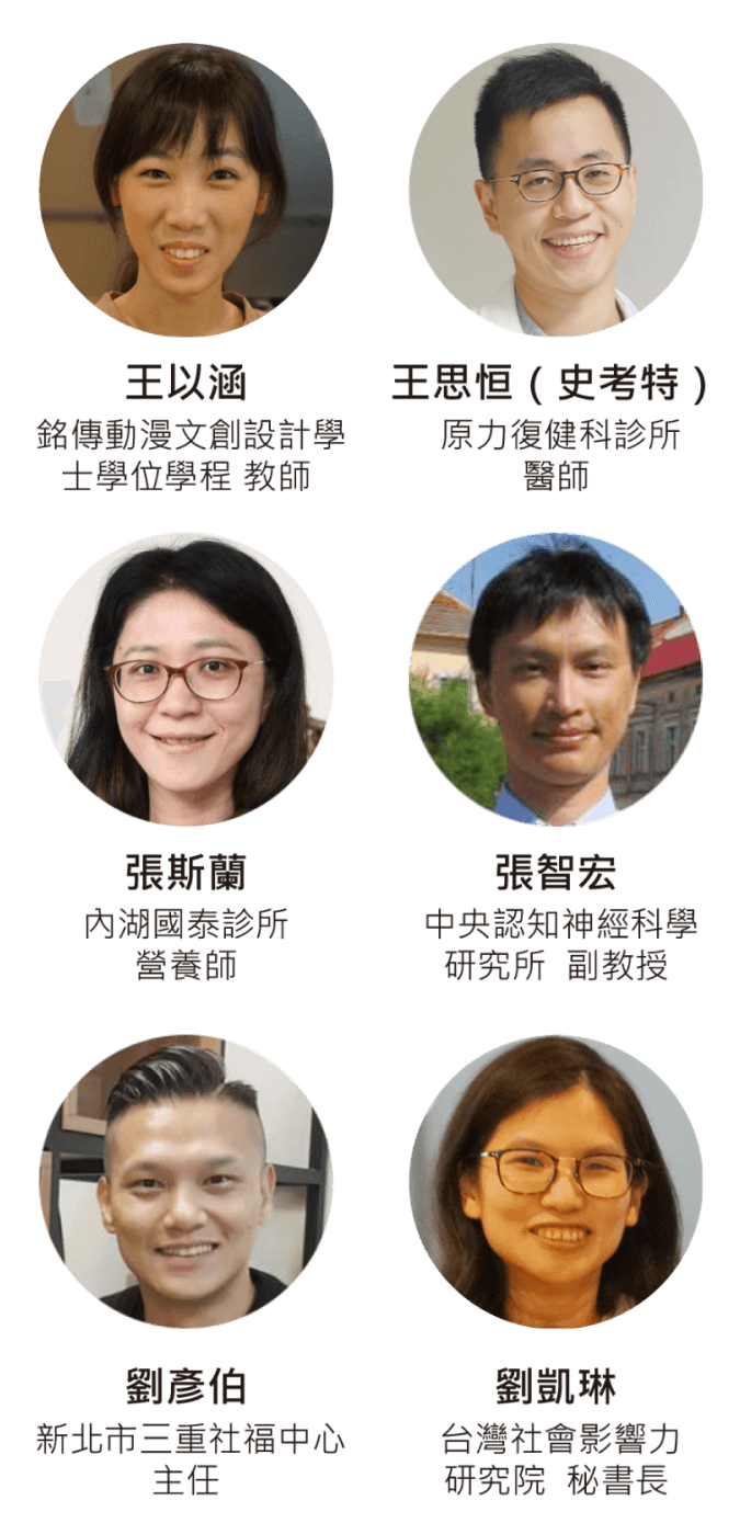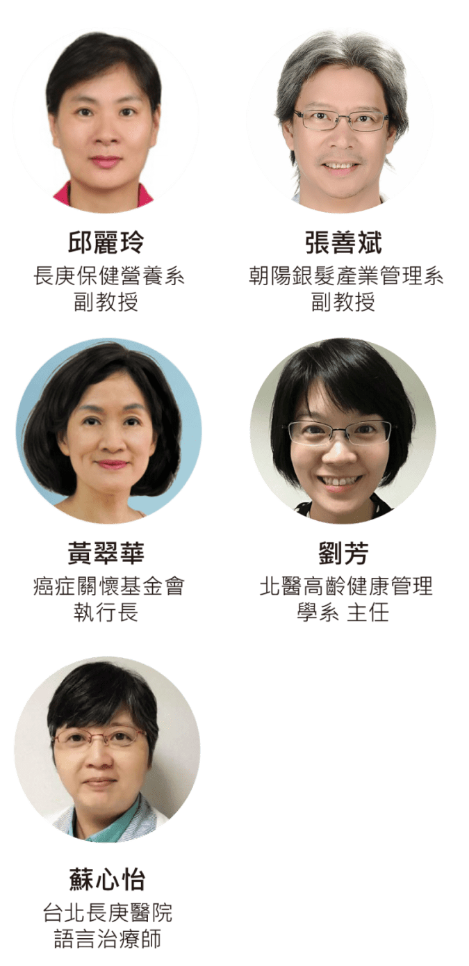 依四大主題──飲食、運動、認知、人際分四個場次,邀請各領域的專家學者,分享高齡者常見之問題與困擾,並就其專業,提供解決改善之道。同時邀請學生參與,讓學生見習到各領域的專業,拓展高齡領域的想像。歸納各主題重點: