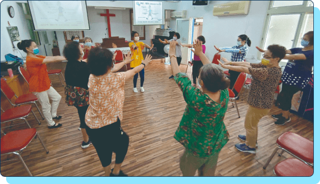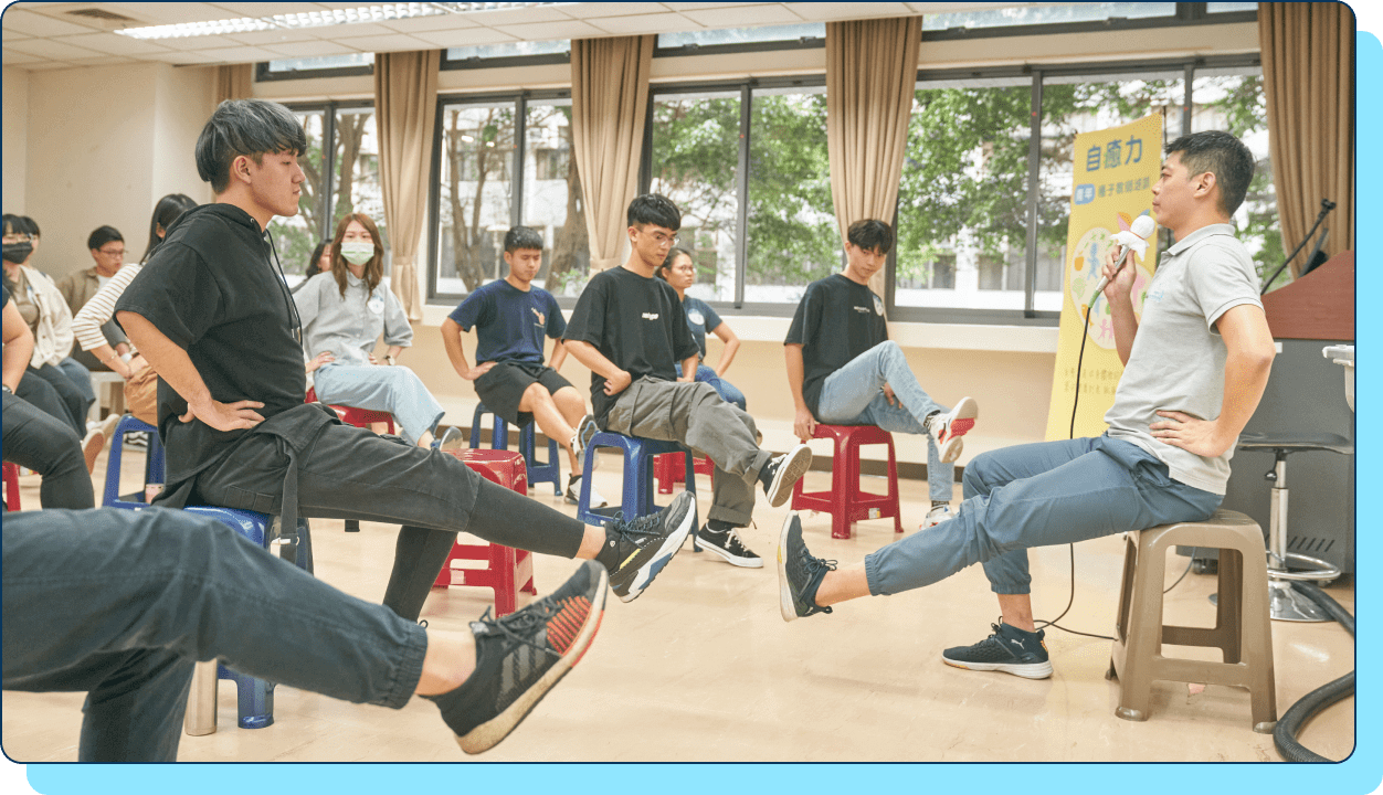 團督活動中,有機會和別組進行交流,學習更多元的授課方式,並且修正及補足自己的不足。成為講師後,在家也很習慣做伸平有力的肢體訓練,保持一定的身體活動度,並更注意口腔衛生,也會隨時提醒家人親友及長輩重視自己的健康。